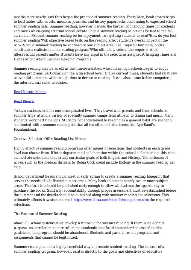 High School Summer Reading Programs
