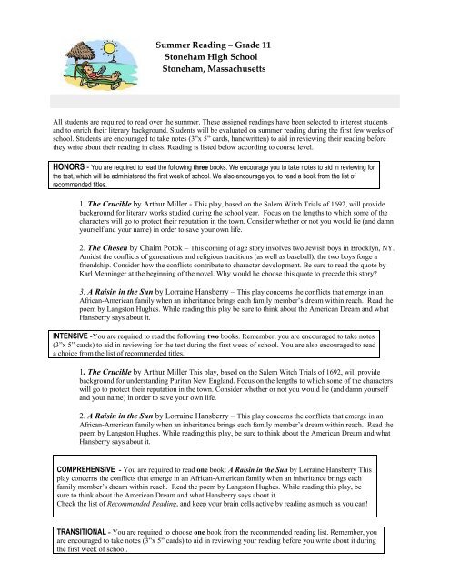 Summer Reading A Grade 11 Stoneham High School Stoneham