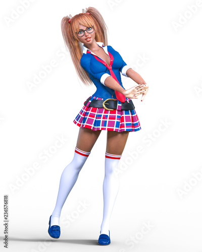 3d Beautiful Young Attractive Girl School Uniform High School