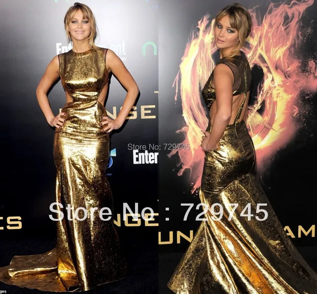 Us 189 99 2015 Jennifer Lawrence Dresses Mermaid Scoop Hollow Floor Length Gold Satin Celebrity Dresses In Celebrity Inspired Dresses From Weddings
