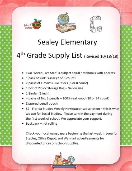 School Supply Lists Fourth Grade