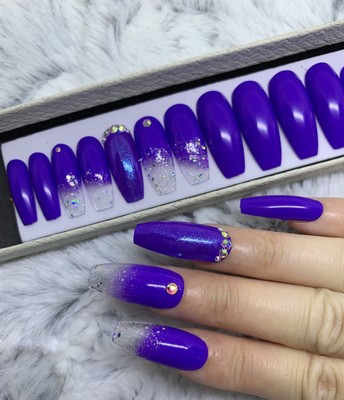 Pukka Purple Beauty Glitter Ombre False Fake Extra Long Coffin