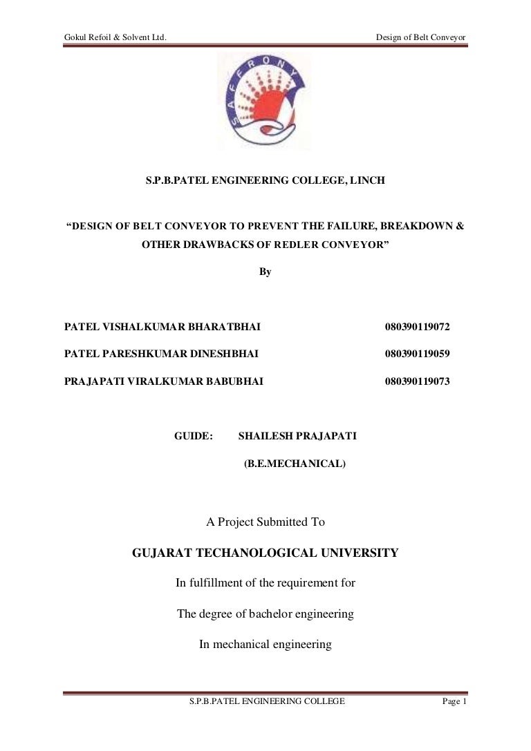 Sample Project Report On Conveyor Belt Stone Mining Mill